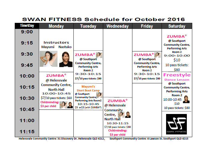 SWAN FITNESS Schedule October 2016 Published on 03/09/2016 in SWAN FITNESS LESSONSFull resolution (688 × 522) ← Previous Next →